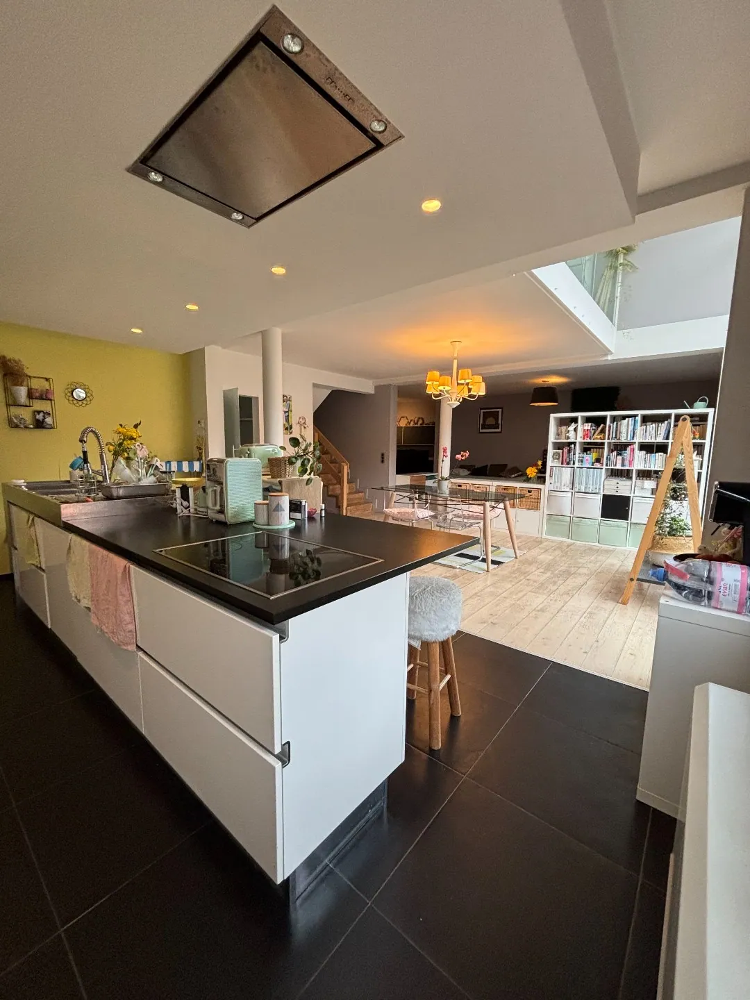 Au rez-de-chaussée : Hall d'entrée, vestiaire, toilettes, vaste séjour avec cuisine ouverte, salon-TV/multimédia